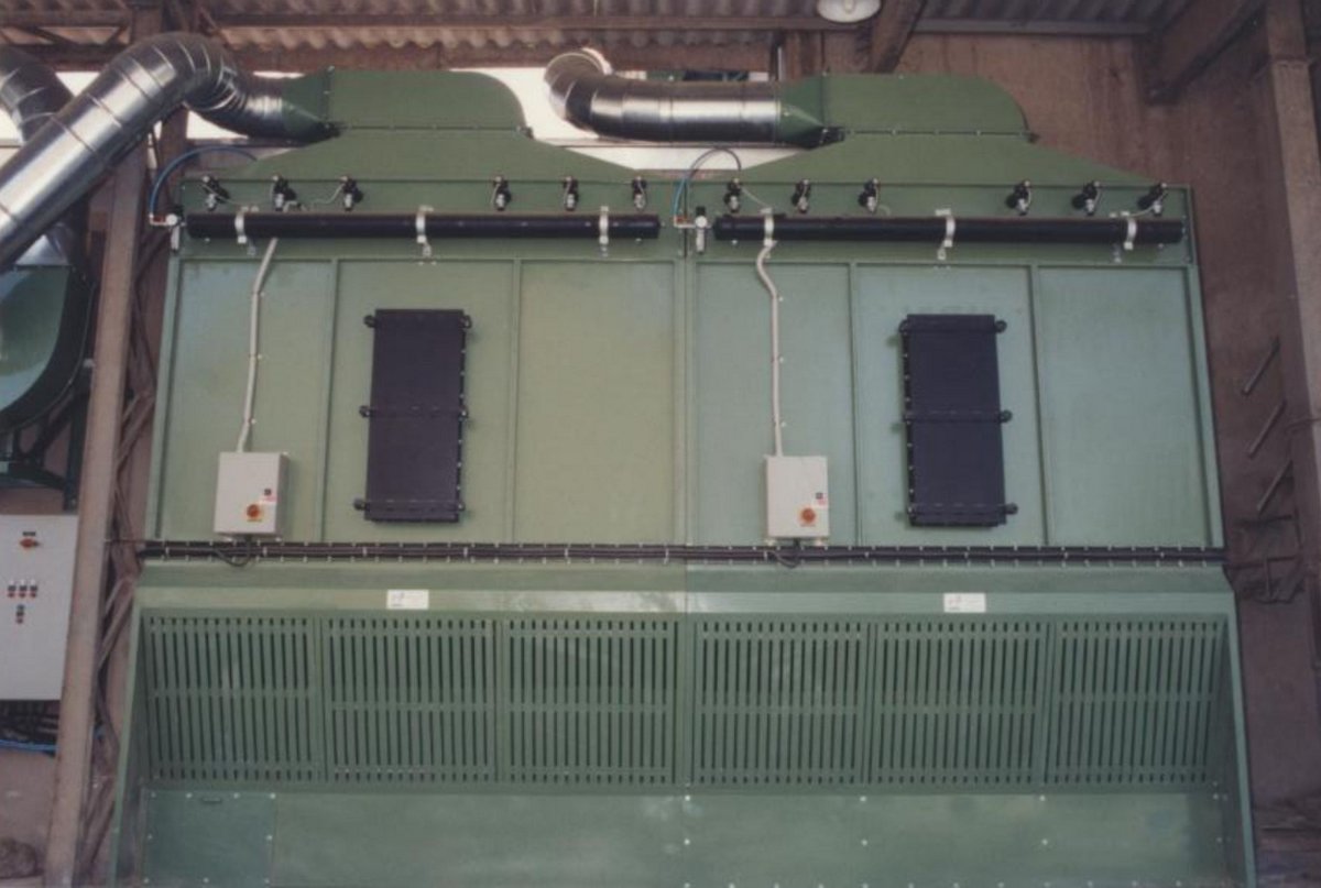 Ogni modulo � composto da un elettroventilatore centrifugo a semplice aspirazione completo di motore elettrico, un filtro a lavaggio in controcorrente mediante aria compressa, un raccordo in uscita dal filtro, un camino di scarico aria, una coclea di trasporto polveri ed una valvola stellare rotativa di scarico.
