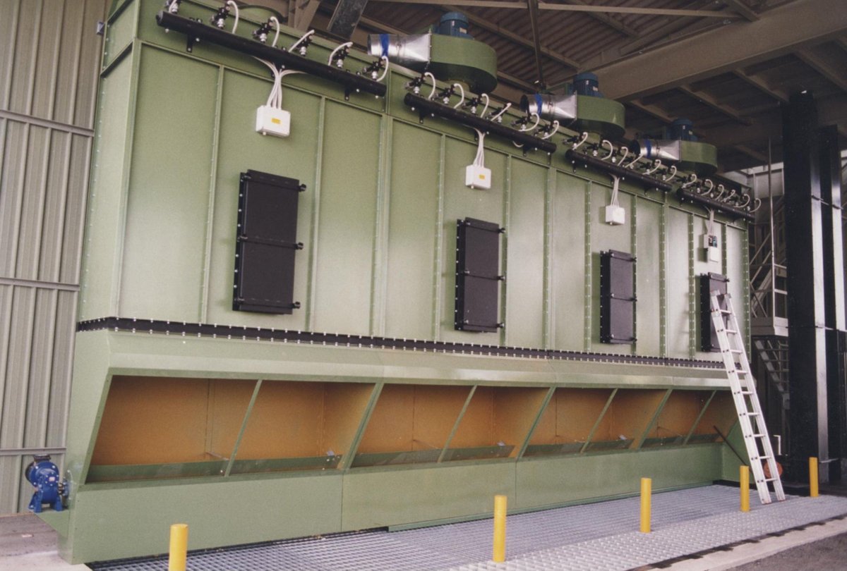 I moduli filtrarti vengono collocati lungo la parete sulla tramoggia di scarico degli automezzi in modo da coprire la buca in oggetto in tutta la sua lunghezza.