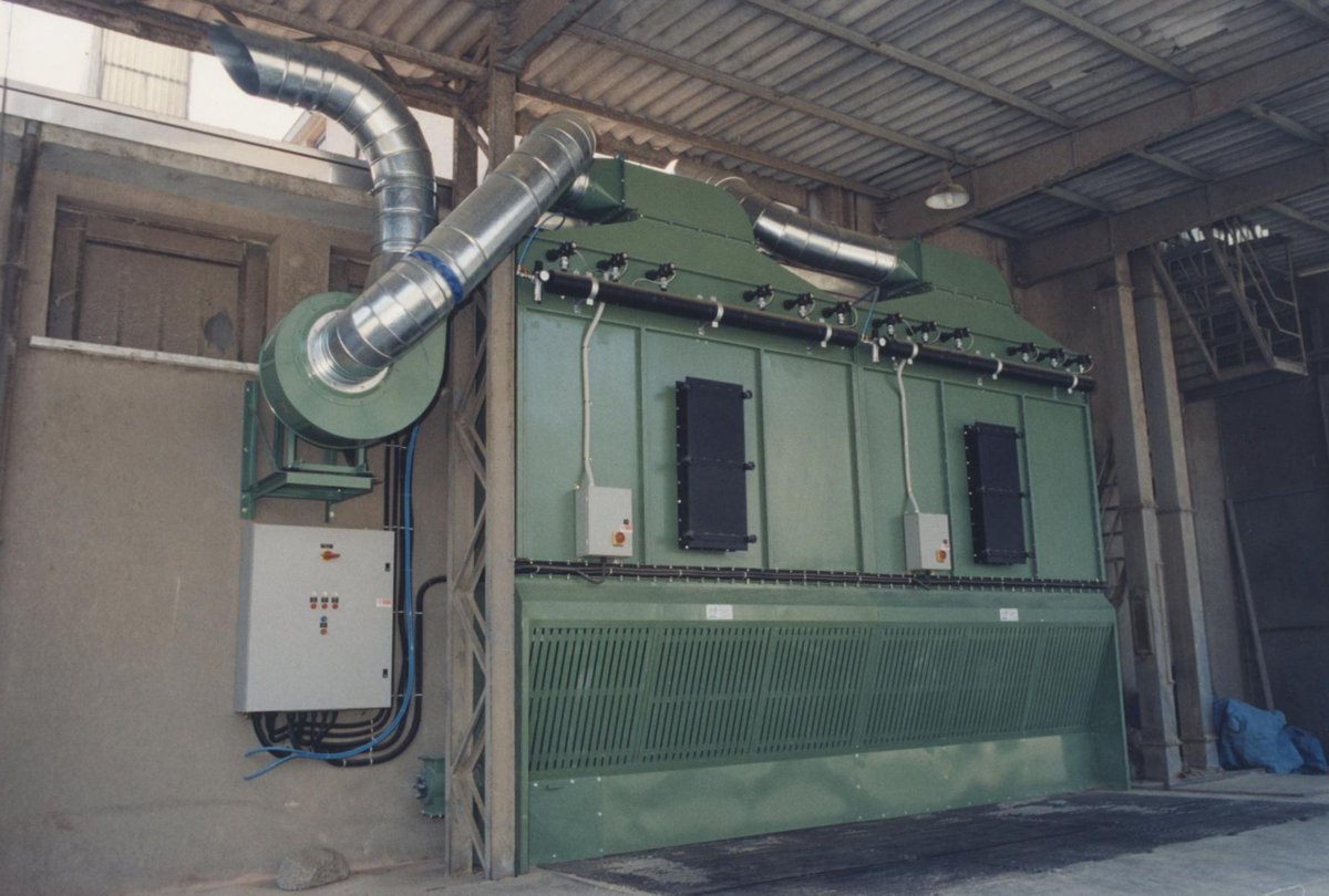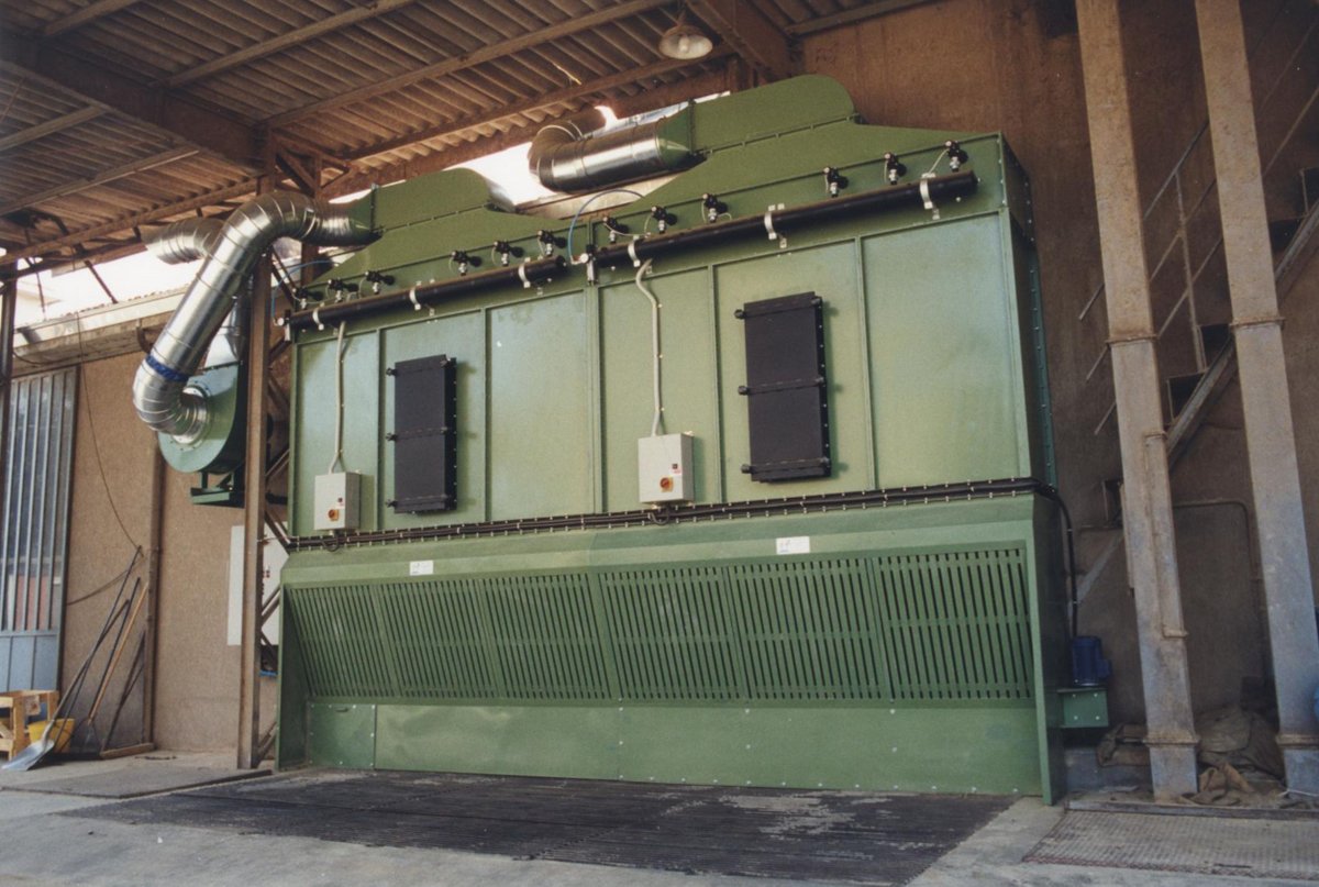 Ogni modulo � composto da un elettroventilatore centrifugo a semplice aspirazione completo di motore elettrico, un filtro a lavaggio in controcorrente mediante aria compressa, un raccordo in uscita dal filtro, un camino di scarico aria, una coclea di trasporto polveri ed una valvola stellare rotativa di scarico.